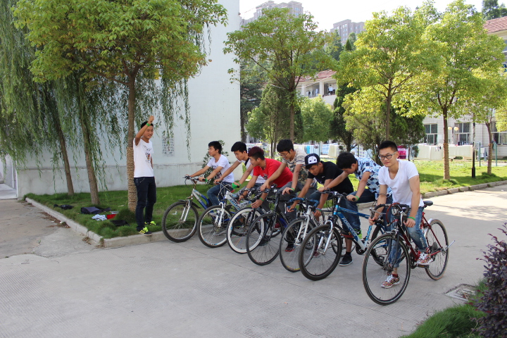 4日,志愿者们在北校区22号公寓楼前举办绿色骑行比赛,向同学们宣传绿色、低碳出行环保理念。志愿者邓凯说:“我们希望通过骑行活动,在校园里倡导一种新的生活方式,离开网络,抛开烦恼,低碳出行,释放压力,跟着大自然一起做有氧运动。”