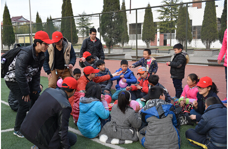 随后,理学院志愿者和小朋友们开始一个小时的游戏环节。小朋友们都纷纷参与进来,一起跳绳、捆腿跑等素质拓展活动。大家欢声笑语,孩子们的笑声和志愿者的爱心紧紧地融合在一起。
