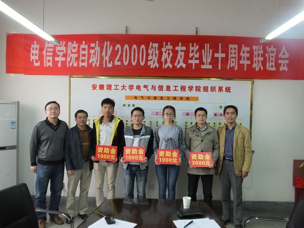10月22日下午,电气与信息工程学院2004届校友捐助贫困在校生仪式在电信学院4楼会议室举行。参加仪式的有自动化2004届校友代表,电信学院党委副书记董淑平、自动化2004届辅导员徐关怀、相关专业辅导员以及受资助的在校生。