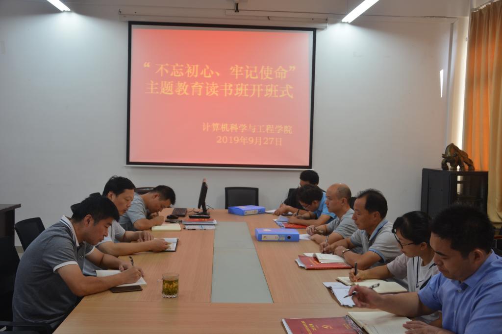 9月27日上午,计算机学院党委“不忘初心、牢记使命”主题教育读书班开班仪式在求本楼B403会议室举行。学院党委书记王永祥作开班动员讲话,学院党员领导干部及教工党支部书记参加了开班式。