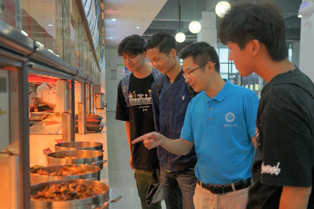 “仁苑的油泼面,义苑的火锅,爱苑的汤包……我们学校有4个食堂,每个都各有特色!”听着辅导员杨洋老师的介绍,刘骁驰同学的肚子咕咕叫起来。刚办好入住手续的他和杨老师一起来到了爱苑食堂。“开学第一顿,老师请你们吃,喜欢吃什么就点。但是要记住避免‘舌尖上的浪费’哦。”半个小时里,杨老师和学生们拉家常、问学习、谈理想,分享快乐、传递温暖。