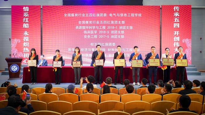 校党委常委、副校长董雨宣读学校2020年度本科生、研究生学年总评和共青团工作表彰文件。安徽省优秀共青团干部经济与管理学院李双双老师,安徽省百优大学生、国家奖学金获得者、校十佳青年、三好学生标兵机械工程学院过程装备与控制工程专业2017级2班学生杨继冲同学,全国煤炭行业五四红旗团支部安全科学与工程学院安全工程2017-5班团支书万丽婷同学分别代表先进个人和先进集体在会上作交流发言。