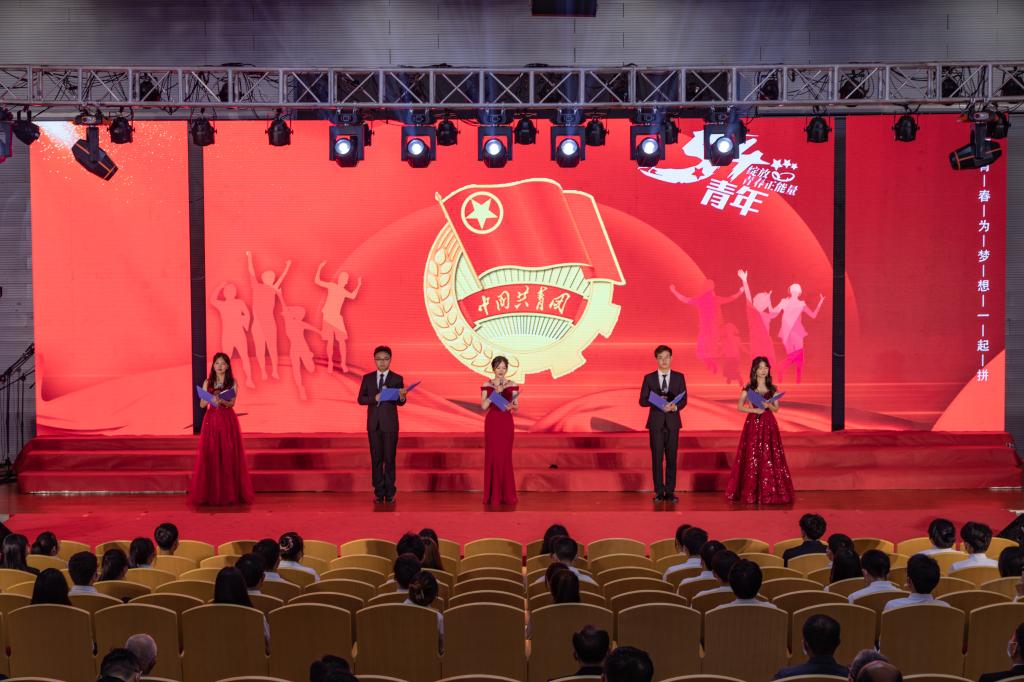 5月10日晚,学校庆祝中国共产主义青年团成立100周年暨五四表彰大会通过线上线下相结合的方式隆重举行。学校在舜耕会堂设主会场,各学院设分会场。校党委书记郭永存出席大会并讲话。校党委副书记、常务副校长虞宝桃主持大会。副校长孟祥瑞,党委常委、副校长郑明东、宫能平,党委常委、纪委书记、监察专员周旭,党委常委、副校长鲁超出席大会并颁奖。30.23万人次通过网络直播观看大会盛况。