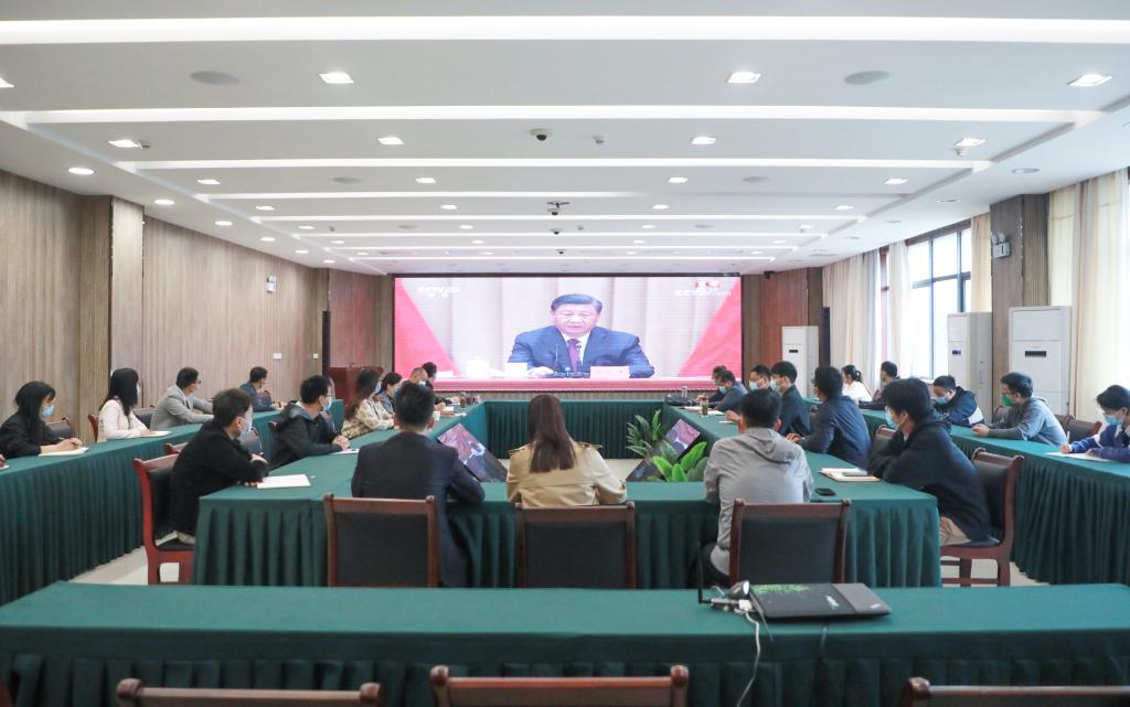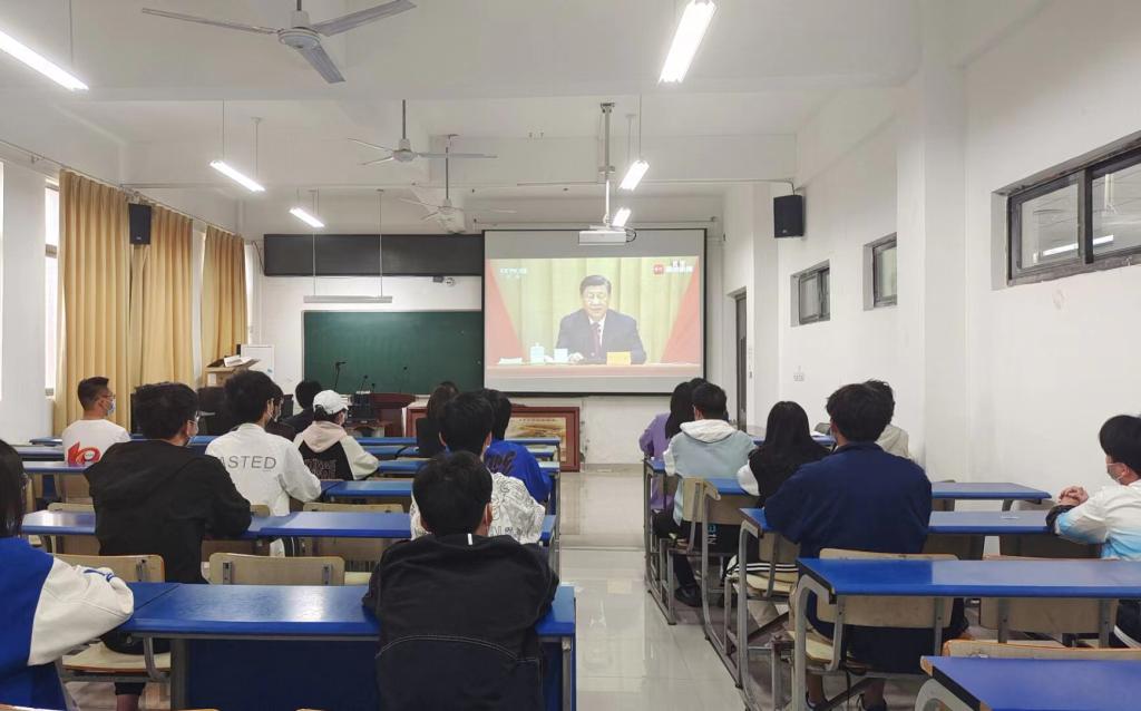 党政办公室、党委组织部、党委宣传部、党委学工部、校团委等单位负责人,各二级学院团委书记与青年学生代表一起在主会场观看了大会直播。各学院领导与青年师生代表在分会场观看直播。各单位还组织青年师生通过电脑、手机、电视等多种方式分散收看大会直播。