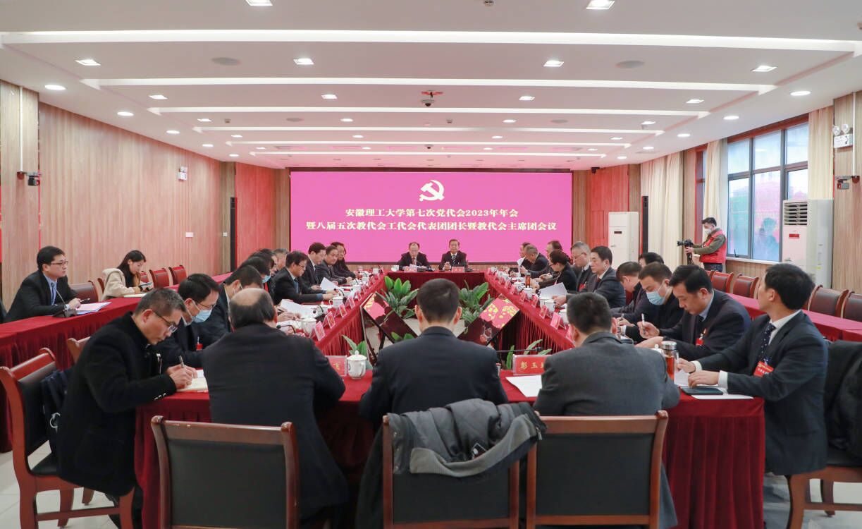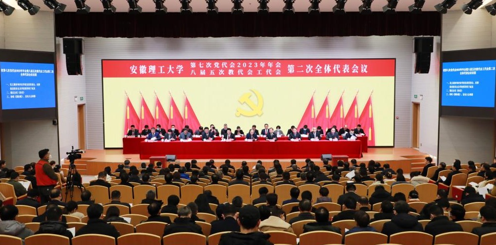 2月10日,中国共产党安徽理工大学第七次代表大会2023年年会暨八届五次教职工代表大会、工会会员代表大会在舜耕会堂隆重召开。大会的主题是:以习近平新时代中国特色社会主义思想为指导,衷心拥护“两个确立”、忠诚践行“两个维护”,全面贯彻落实党的二十大精神,强化为党育人、为国育才使命担当,落实立德树人根本任务,奋力开启“双一流”创建新征程。