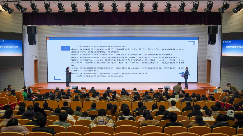 此次辅导员素质能力大赛分为院赛和校赛两个阶段,涵盖了基础知识测试、案例研讨、谈心谈话、生情熟知、主题班会等5个环节,全面考察辅导员的综合素质和业务能力。经院赛选拔,全校20个学院共推荐27名选手进入校赛;经校赛基础知识测试,最终有18名选手晋级决赛展示环节。决赛展示分为两个环节:一是案例研讨,主要考察选手综合运用理论分析问题、研判问题、解决问题的能力;二是谈心谈话,主要考察选手对学生的教育引导能力、解决理论困惑和实际问题的能力等。