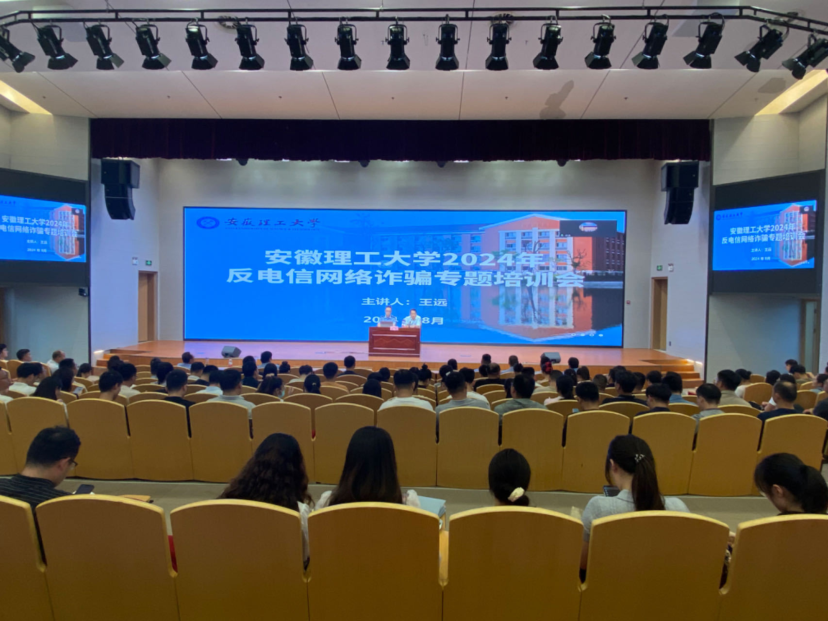 为进一步增强我校反电信网络诈骗宣传教育的针对性、精准性,提升辅导员反电信网络诈骗宣传教育水平,8月29日下午,党委保卫部、党委学工部会同淮南市公安局山南新区分局在学校舜耕会堂联合举办2024年反电信网络诈骗专题培训会。分局法制大队二级警长、公职律师王远警官作“青春同心,反诈同行”主题报告。