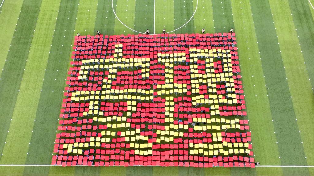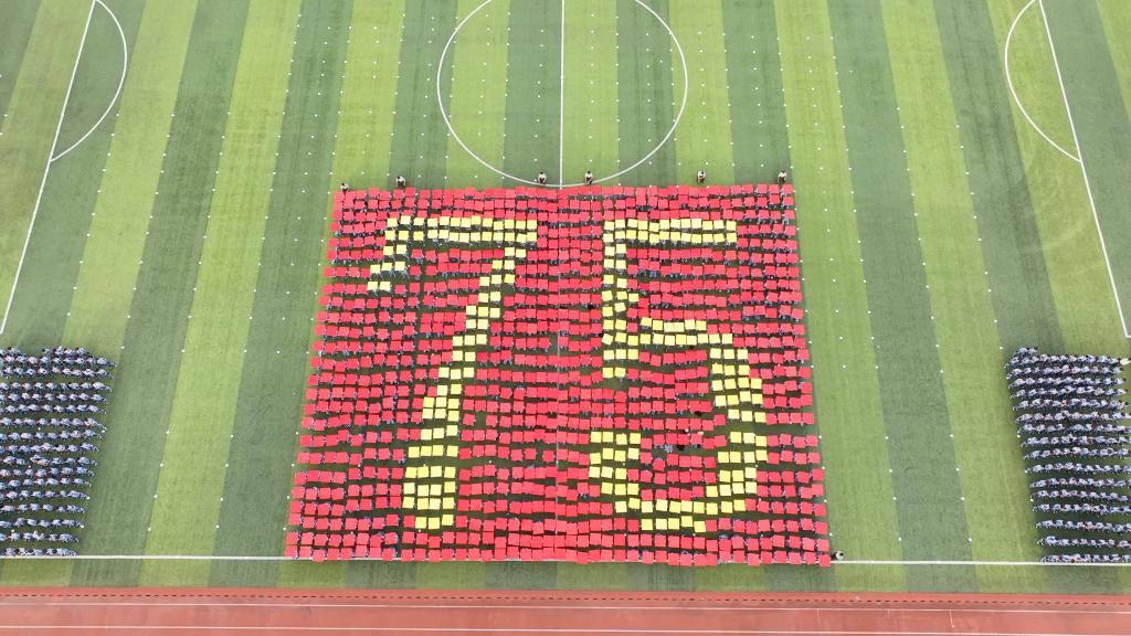 随着学生方阵摆出“10、9、8、7……”数字倒计时字样,军训汇报表演正式开始。花样操方阵编排巧妙,依次呈现“我爱中国”“75”“我爱安理”“自信创一流”等字样和图案,表达了2024级新生对学校的热爱之情,对祖国的深情告白,为新中国成立75周年献上美好祝福。