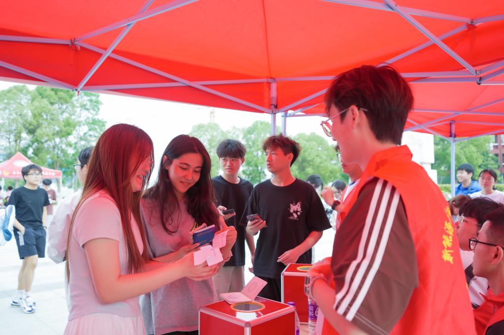 五月的校园,榴花似火,阳光明媚。5月18日,在学校仰山广场和耕心楼南广场,“一站式”学生社区文化嘉年华如火如荼地进行着。二十四节气缎带书签随风摇曳,紫金石砚台在阳光下闪耀温润光芒,四大类文化主题,二十三个展位,三千余名师生共襄盛举,编织了一场精彩纷呈的文化盛宴。
