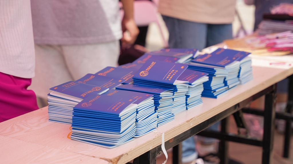 “老师,这个灯笼挂两边吧”“老师,社区‘护照’我来和您一起发”学生们热情高涨,协助老师将展位布置得井井有条,师生共同设计的印章,凝聚着对学院的热爱。