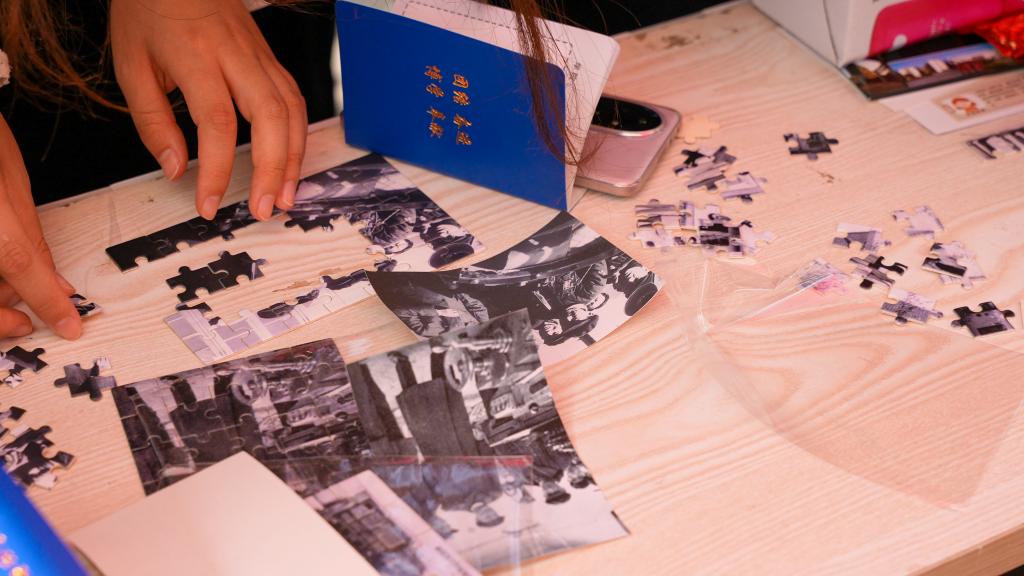 “安徽理工大学成立于1945年!”“答对了!”一位手持盖满印章的“社区护照”的学生兴奋地挑选了一张明信片作为奖品,加盖活动纪念印章后,他认真地写下对未来的寄语;在“时光拼图”展位前,学生们全神贯注地拼着由学校老照片制作而成的拼图,每一片拼图都承载着校园的历史变迁,每当一幅拼图完成,都如同揭开一段尘封的记忆,让人不禁对前辈们的奋斗历程肃然起敬;在“校史讲解区”前,讲解员声情并茂地讲述着学校的发展历程,仿佛将大家带回了那段峥嵘岁月。