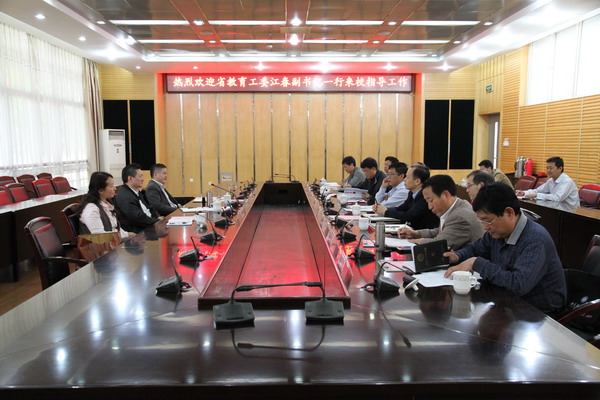 5月5日下午,省委教育工委副书记江春率教育厅思想政治工作处处长张庚家、副处长田世敏一行3人莅临我校调研指导工作。校领导颜事龙、郭永存、叶醒狮、王其东热情地接待了江春一行,在图书馆北会议室进行了座谈。