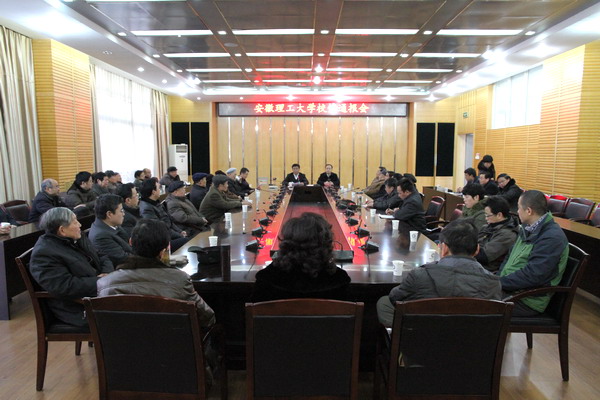 1月22日上午,学校在校本部图书馆北侧会议室召开了2013年度校情通报会。校党委书记颜事龙、校长郭永存、党委副书记王洪出席了会议,校离退休老同志,省文史馆馆员,各级人大代表和政协委员,各民主党派基层组织负责人,校党外知识分子联谊会会长、副会长、理事以及有关职能部门负责人参加了会议。会议由王洪主持。
