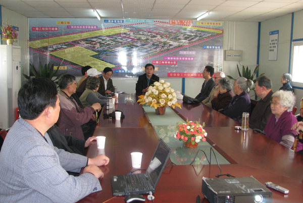 老干部们首先考察了我校新区建设,校党委书记张明旭亲临新校区建设现场,对老干部们关心新区建设和学校发展表示十分感谢。张明旭介绍了新校区建设历程、工程目前进展状况、教职工住宅区建设等方面情况,并与老干部们就有关问题进行了亲切交流。