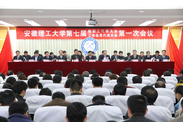 3月21日下午14:30,学校在校本部教学楼九楼报告厅隆重召开七届一次教职工代表大会和工会会员代表大会第一次全体会议。安徽省总工会常委、教育工会主席夏建华,校领导颜事龙、郭永存、张明旭、叶醒狮、王洪、刘泽功、王其东、孟祥瑞、周峰及大会主席团成员在主席台就座。