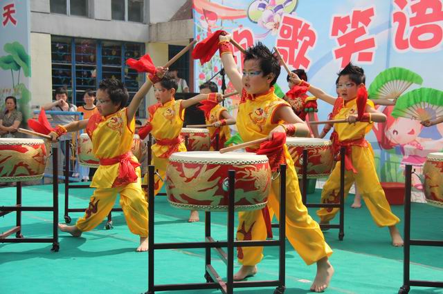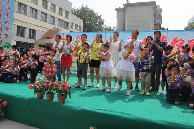 孩子们身着节日的盛装,用美妙的歌声、精彩的舞蹈迎接国际儿童节的到来。活动中,孩子们就像一群可爱的精灵,伴随着欢快的音乐载歌载舞,他们变魔术、打快板、跳快舞……尤其是大班孩子表演的舞蹈《鼓韵》,铿锵的鼓点、粗犷的舞姿,赢得全场观众一阵阵热烈的掌声和喝彩声。最后,幼儿园老师集体表演的舞蹈《青春炫舞》将整个演出推向高潮,孩子与家长们也随着节拍呐喊、跳动,整个幼儿园成了欢乐的海洋。整场演出光鲜、亮丽、炫目,得到了来宾及家长的一致称赞!