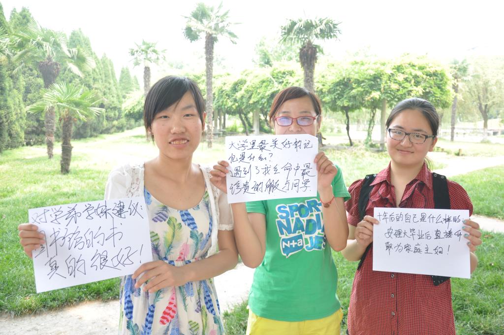 采访过程中,有的人对大学里没有努力学习而遗憾,有的人对大学里没能找到自己的爱情而遗憾;有的人对没能实现自己的价值而遗憾;有的人因时光匆匆而遗憾。一位同学动情地说,我要向一位兄弟说声“对不起”,这些年一直没有勇气道歉,可惜他现在已经在新的岗位上工作了,我决定今晚就给他发条短信;一位女生说,我真的还想能在同学面前认认真真地做次自我介绍,那时的我太含羞,没把握住机会。同学们纷纷表示,如果有机会,一定会努力实现自己的梦想,遗憾只在过去,未来还可以努力奋斗,并希望对学弟学妹们有所启示。