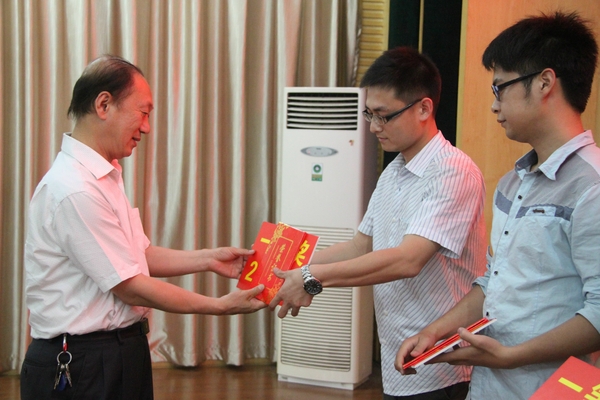 6月17日下午,我校2014年龙软科技奖学金颁奖仪式在校图书馆1楼北会议室隆重举行,副校长叶醒狮出席仪式并为获奖同学颁奖。校学生处处长田中良主持颁奖仪式。