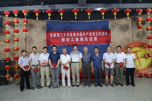 6月22日,由校工会举办的庆祝建党93周年教职工象棋友谊赛在校本部教职工活动中心多功能厅举行,来自各分工会及离退休工作处的7支代表队20余名选手参加了比赛。校工会主席洪江如、副主席夏邦权到现场观看比赛并为获奖代表队及选手颁奖。