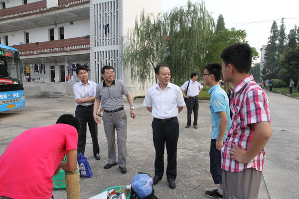 7月8日早6时,校长郭永存、副校长叶醒狮和校纪委书记周峰先后亲临学生搬迁工作一线,指导并亲切慰问在学生搬迁工作一线的师生员工。校党政办公室主任张海军,学生处处长田中良、保卫处处长李明等陪同。