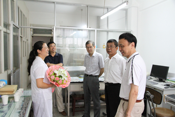 颜事龙、王其东代表学校慰问了医学院邓云教授,向她致以节日的祝福,对她在医学教学、科研方面取得的优异成绩表示赞赏,是青年教师学习的榜样。