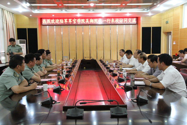 9月4日下午,校长郭永存、副校长叶醒狮、纪委书记周峰热情接待了到访的中国人民解放军陆军军官学院院长吴翔、副院长许永祥等一行8人。双方在图书馆北会议室进行了交流座谈。