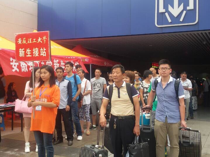 9月11日,我校2014级新生接站工作的第2天,淮南火车站、淮南东火车站、淮南汽车站3个迎新站点的接站工作全面开始,迎来了2014级新生报到的高峰。