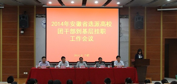 9月16日,2014年安徽省选派高校团干部到基层挂职工作会议在安徽大学召开。省委教育工委常务副书记高开华,省委组织部副厅级组织员、干部综合处处长朱潜,团省委副书记周密等出席会议并讲话。安徽大学校长程桦出席会议并致辞。2014年赴基层挂职的高校团干部,各省辖市团委、团省委直属高校团委负责同志,以及部分2013年赴基层挂职的高校团干部代表共90余人参加会议。