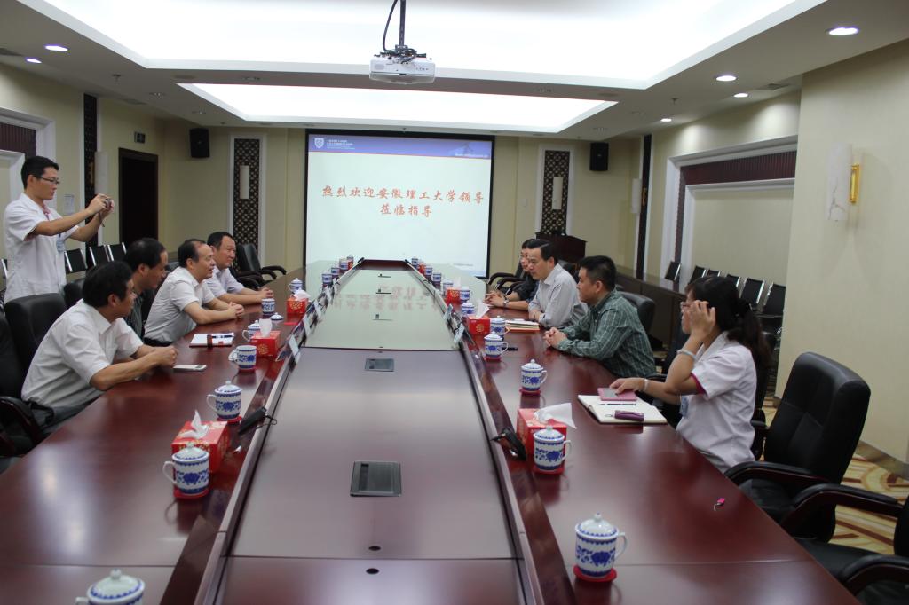 郭永存对第十人民医院取得的辉煌成就,特别是近几年来的快速发展和取得的成绩表示赞赏,对院方给予我校医学学生提供优质的实习条件和良好的学习、生活环境表示十分感谢!郭永存介绍了我校历史沿革、发展成就、人才培养、科研成果与社会影响、高水平大学建设以及附属医院建设的筹划等情况。随后双方重点就附属医院建设的必要性及可以采用的建设方式、科研的激励机制和管理等领域进行讨论。秦环龙表示,上海第十人民医院十分期待着安徽理工大学快速发展,只要十院能做到的将会全力支持学校的建设与发展。