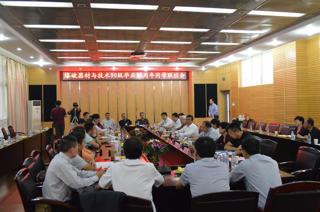 10月3日上午,我校爆破器材与技术90级毕业20周年同学联谊会在图北会议室隆重举行。校党委书记颜事龙出席会议并作重要讲话,校党政办主任张海军、化学工程学院党政领导及老师代表、90级校友共同出席交流会。