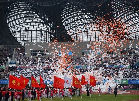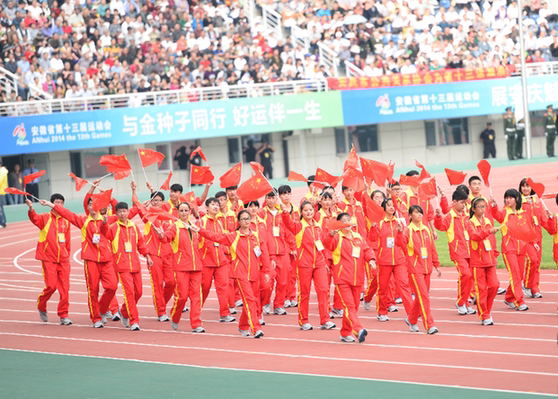 金秋宜城绽放激情追梦想,盛世江淮放歌青春书华章。10月12日下午3时,由安徽省人民政府主办,安庆市人民政府承办的安徽省第十三届运动会在安庆市体育中心隆重开幕!省委书记、省人大常委会主任张宝顺宣布开幕,省委副书记、省长王学军致开幕辞,副省长谢广祥主持开幕式。副校长叶醒狮代表安徽理工大学和各市代表团及各高校代表团负责同志一起出席了开幕式,并亲切看望慰问了我校参赛师生。