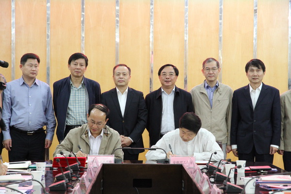 10月13日下午,安徽理工大学与潘集区人民政府校地合作协议签字仪式在图书馆一楼北会议室举行。淮南市副市长、潘集区委书记蔡宜骅,淮南市政协副主席、科学技术局局长吴健,潘集区委副书记、区长潘奇志,潘集区委常委、副区长王彤以及安徽理工大学校长郭永存,副校长王其东、孟祥瑞出席会议。会议由孟祥瑞主持。