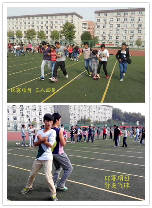 本届趣味运动会设计了简单有趣的背夹气球,紧张刺激的六人抬腿,配合默契的三人四足,速度与激情并存的袋鼠跳等。在三人四足的比赛中,两位男同学最初很想通过加快脚步赢得胜利,但发现队中的女同学会有危险,且效果不理想,他们经过商量讨论,由一名队友喊:“一左、二左、三右、记得眼睛不要往地上看……对,慢慢来……”最终,他们通过默契配合第一个到达了终点。比赛中,选手们的团结友爱、积极向上的精神感染了在场的许多同学。