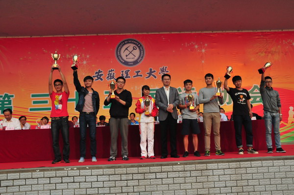 闭幕式上,总裁判长夏冬生宣布了比赛成绩。获得优秀运动员称号的分别是学男组机械工程学院王健,学女组经济与管理学院刘文婷同学;荣获学生组体育道德风尚奖的单位分别是能源学院、计算机学院、理学院、外国语学院、人文学院、测绘学院、化工学院、医学院;荣获教工组体育道德风尚奖的单位分别是测绘学院、计算机学院、土木学院、机关、理学院、外国语学院;荣获学生组团体总分前8名的单位分别是医学院、化工学院、机械学院、材料学院、经管学院、土木学院、电气学院、地环学院;荣获教工组团体总分前8名的单位分别是机关、理学院、外国语学院、电信学院、医学院、后勤集团、机械学院、材料学院;打破校记录的学生分别是机械学院王健在110米栏比赛中以15″58的成绩打破钱萌同学的16″33校记录,地环学院李欣芳在100米栏比赛中以18″03的成绩打破周春芳老师18″5的校记录。