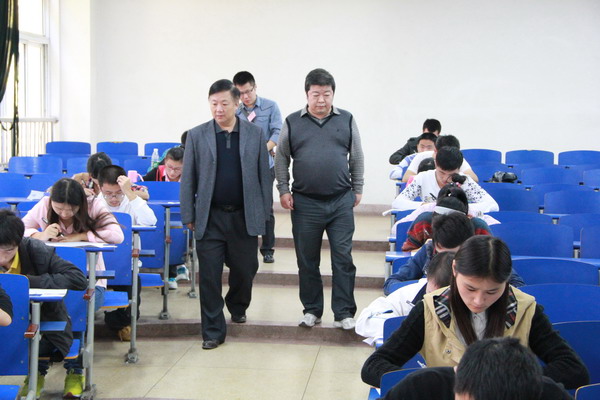 理学院院长经来旺和教务处副处长赵前进巡视考场