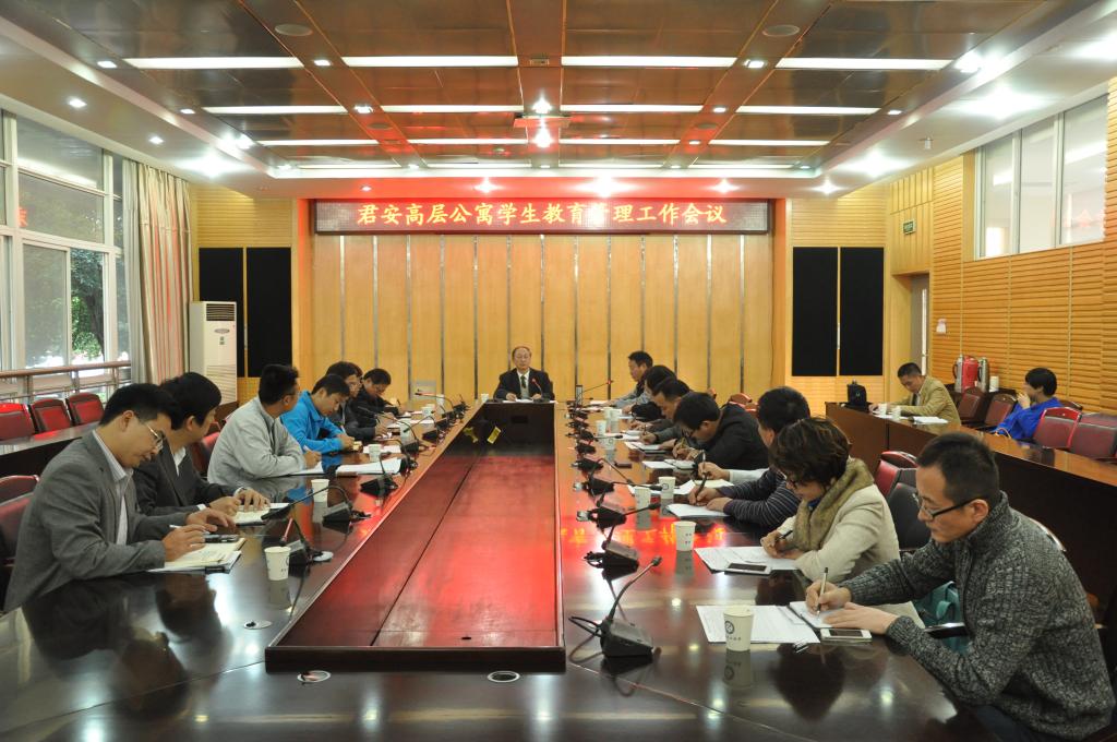 近日,学校在图北会议室召开君安高层公寓学生教育管理工作推进会议,就如何贯彻落实安徽省副省长谢广祥,市委书记沈强,校党委书记颜事龙,校长郭永存等领导关于进一步加强君安高层公寓安全工作重要精神作出工作部署安排。副校长叶醒狮出席会议并讲话。