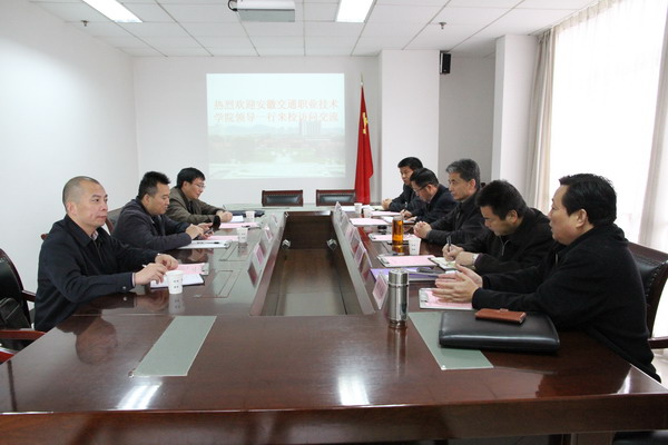 11月19日上午,安徽交通职业技术学院党委副书记孙顺利、副院长王丰胜一行3人来校调研、交流工作。校党委副书记王洪在行政楼14楼会议室会见了来访客人。