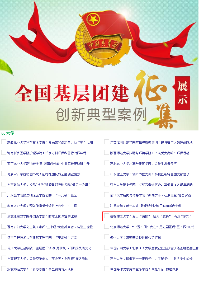 链接: 我校共青团工作入选案例展示和投票网址:http://cpc.people.com.cn/gqt/GB/362573/index.html