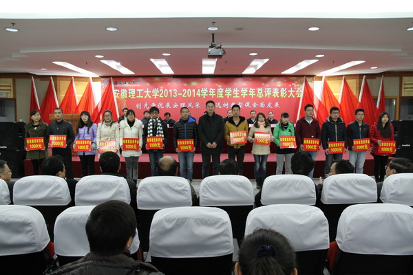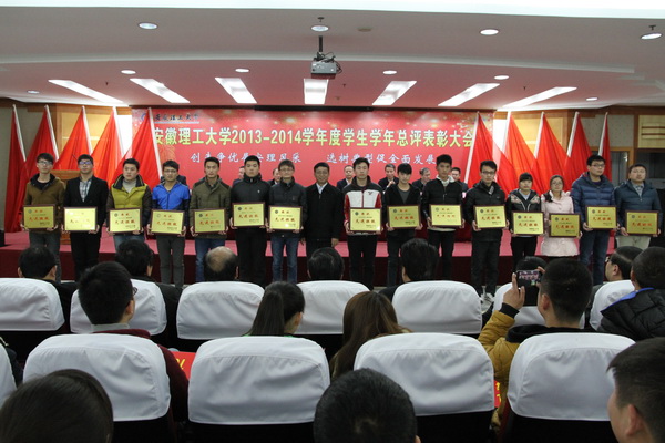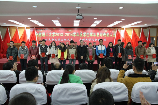 12月18日下午,2013-2014学年学生总评表彰大会在九楼报告厅隆重举行。校领导颜事龙、郭永存、叶醒狮、王洪、刘泽功、王其东、孟祥瑞、周峰出席表彰大会,并为获奖的先进集体和个人颁奖。