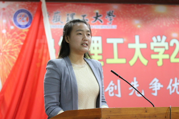 三好学生代表外国语学院李丹妮同学、国家励志奖学金获得者代表机械学院吴超同学、优秀学生干部代表化工学院薛梦瑶同学、先进集体代表材料学院于冲同学分别代表获奖集体和个人发言,分享了自己在追逐梦想道路上的奋斗历程,感谢学校和老师的辛勤培育,并表示将戒骄戒躁,更加严格要求自己,不辜负学校和老师的殷切期盼,再接再厉,不断取得新的成绩。