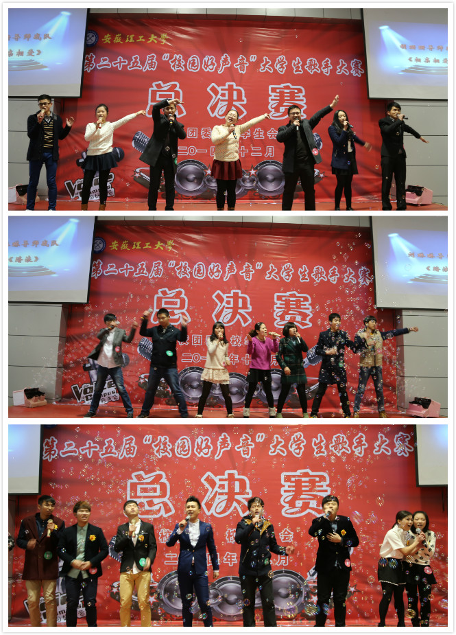 据悉,“校园好声音”大学生十佳歌手大赛是我校一项深受青年学生喜爱的品牌校园文化活动。本届大赛自11月份启动,校团委、校学生会作为主办单位大胆创新比赛形式,综合利用微博、微信、Myouth等新媒体平台,吸引了300余名2014级新生报名参赛,报名、关注、投票、转评的总人数逾万人,打造了“无门槛”的校园文化活动参与模式,鼓励青年学生勇于追梦、敢于圆梦,充分发挥了品牌校园文化活动的育人功能,取得了良好成效。