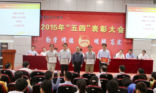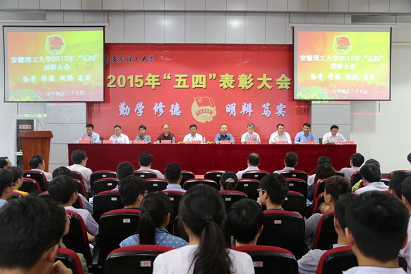 副校长叶醒狮在大会上宣读了《关于表彰安徽理工大学2014--2015学年度共青团工作先进集体和先进个人的决定》等6份表彰文件。