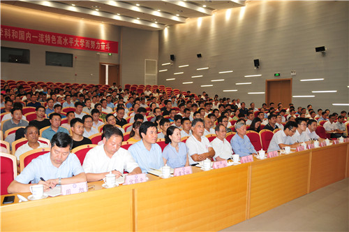 9月12日下午,我校隆重召开“不忘初心、牢记使命”主题教育部署会。省委第十四巡回指导组副组长、安徽农业大学党委常委、副校长蒋家平等指导组成员出席会议。校党委书记郭永存作动员报告。校党委副书记、校长袁亮院士主持会议。在校党员校领导虞宝桃、吴照明、宫能平、董雨、周旭出席会议。