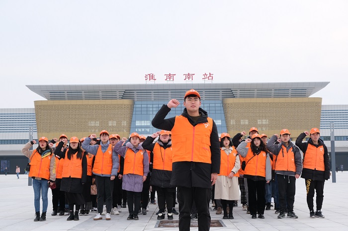 “我是光荣的铁路志愿者,我志愿帮助他人,服务社会,为平安春运、有序春运、温馨春运贡献青春力量!”1月8日下午,明亮的誓言响彻淮南南站站前广场。由中国铁路上海局集团举办的“暖冬行动”春运志愿服务活动拉开帷幕。来自我校各学院的71名青年志愿者参加了誓师大会。