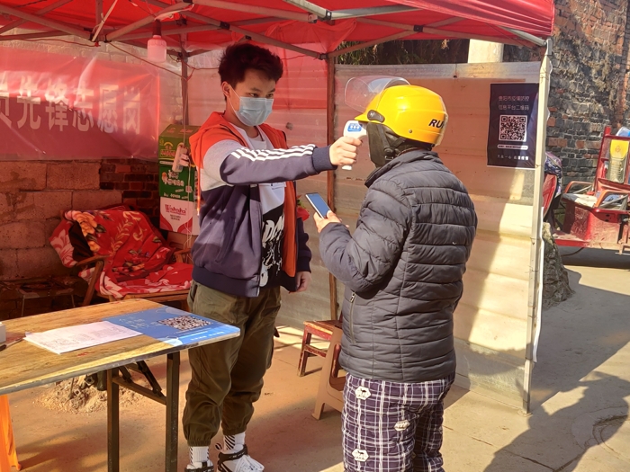 家住湖北省黄冈市罗田县三里畈镇黄泥坳村十二组的地质工程硕士研究生雷振同学作为疫情严重的湖北籍学生,他勇敢地战斗在疫情防控监测点,给路过行人登记信息、测量体温,对外地车辆进行劝返。同时,走村串户做好宣传,向群众讲解如何正确戴口罩、消毒及日常防护,当了解到村里老人不太关注新闻时,还自行编写了宣传手册,录制成音频后,用流动宣传车走村串社开展宣传。有时,他还要配合镇村干部开展巡逻,劝导居民不串门、不聚会,远离人群密集地。“看到全国的疫情形势严峻,作为湖北籍的学生有责任和义务为抗击疫情工作做些什么,身在湖北,但我却毫无畏惧,因为我感受到了来自全国人民的温暖,所以我必须要冲上这个战场!”