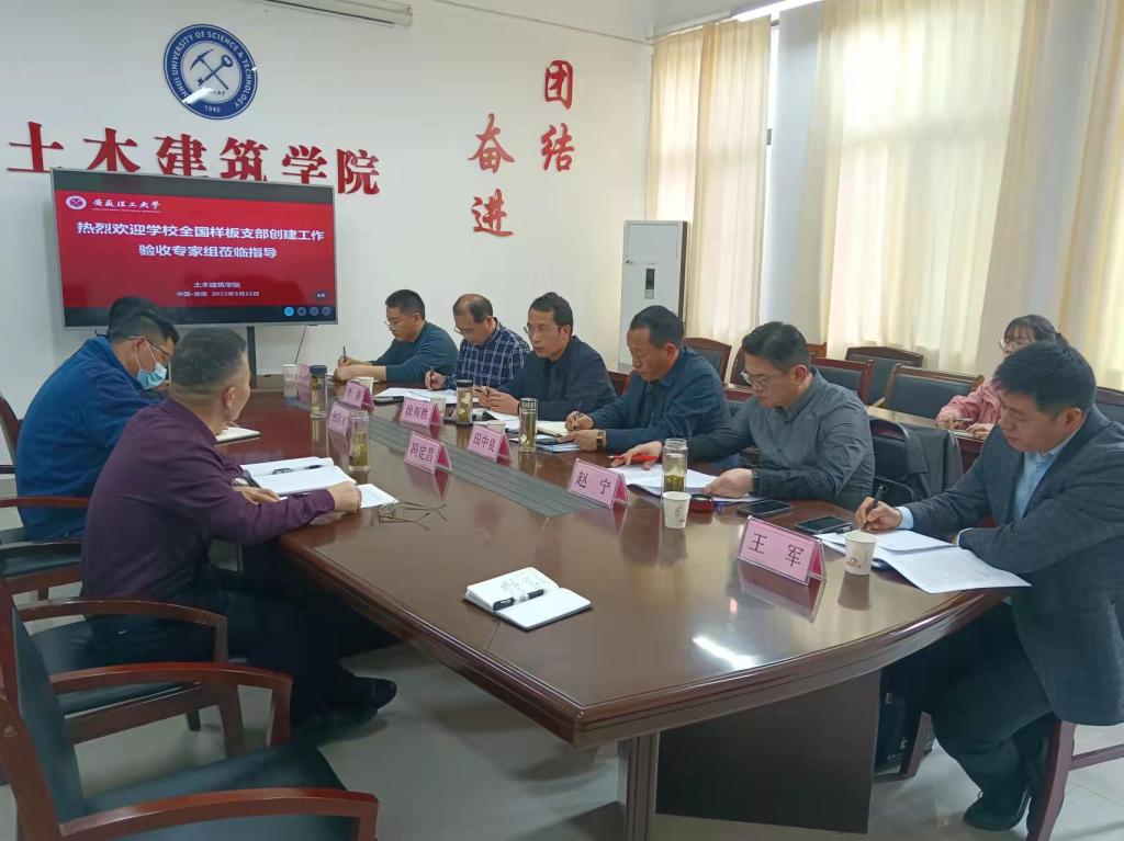 近日,由党委组织部、党委宣传部、党委巡察办公室、党委学工部、经济与管理学院党委负责人组成的专家组一行5人对我校第二批全国党建工作样板支部培育创建单位——土木建筑学院学生第四党支部、矿业工程学院采矿工程系教工党支部创建情况进行校内检查验收。验收汇报会由党委组织部负责人主持。