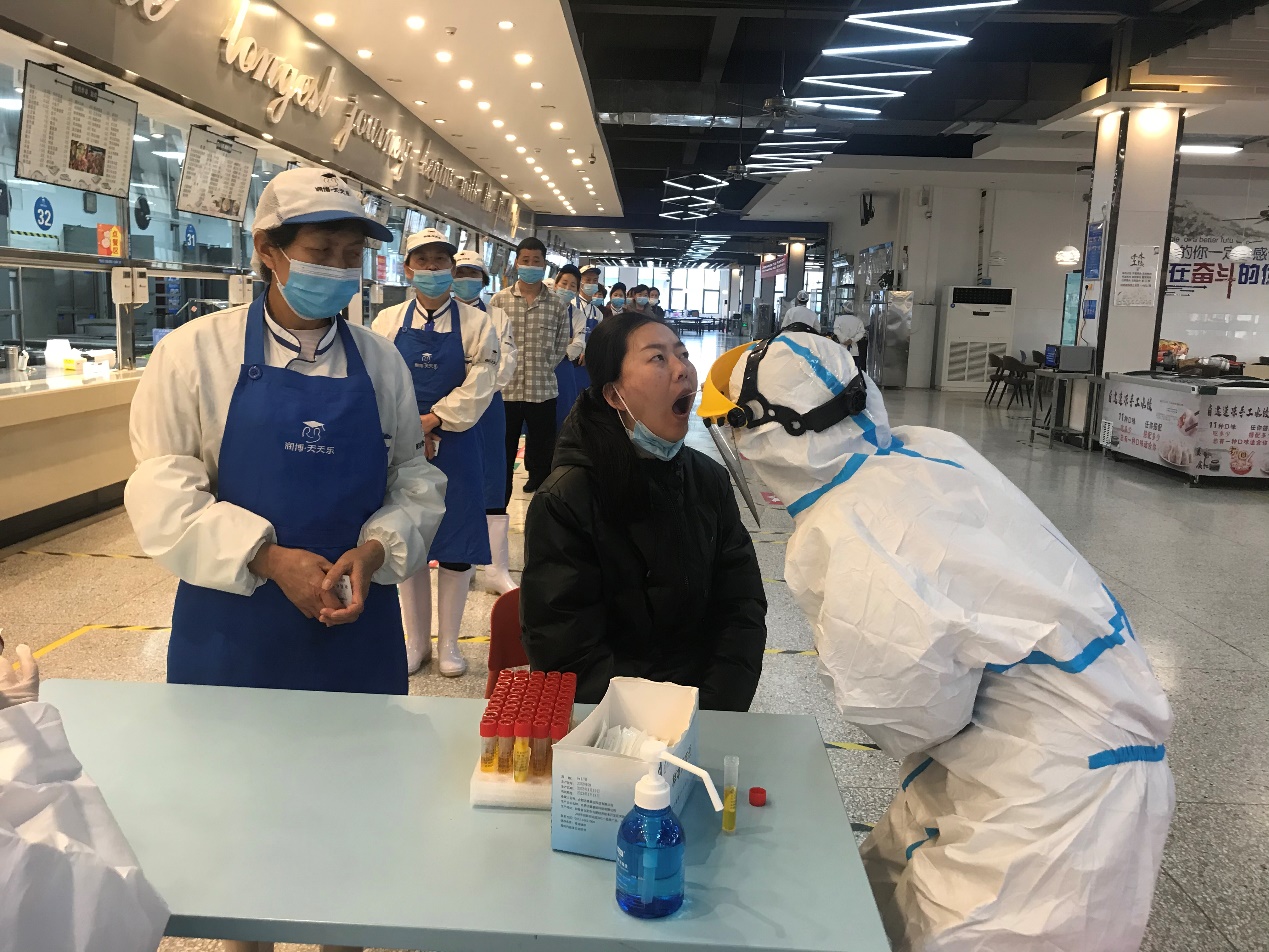 守望相助,隔离师生员工足不出户接受核酸采样