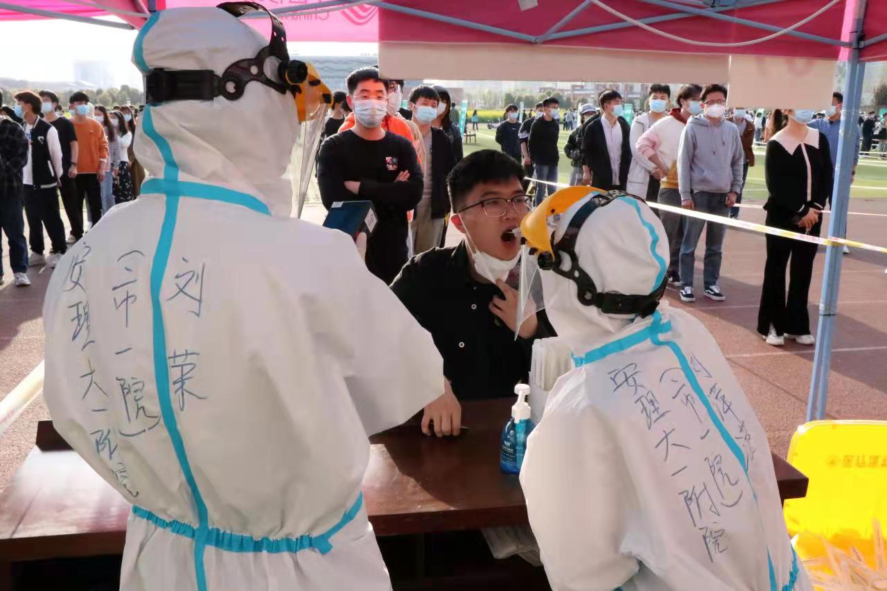 根据疫情形势和防控工作需要, 按照淮南市新冠肺炎疫情防控指挥部安排,学校于4月6日在至诚体育场进行了第六轮全员核酸检测,本次核酸检测共完成采样近32000人。4月7日下午18时30分,检测结果全部出来,均为阴性。截至目前,3万多名在校师生员工已完成六轮核酸检测,检测结果均为阴性,为打赢疫情防控阻击战奠定了坚实基础,为校园安全铸就了一道坚不可摧的保护墙,真正做到了让师生安心、安全。
