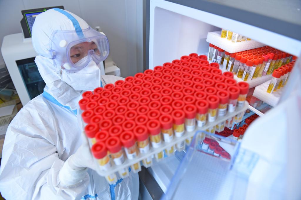 为尽快遏制疫情,尽早实现社会面动态清零,位于安徽省淮南市的安徽理工大学第一附属医院PCR实验室检验人员24小时轮班进行核酸样本检测,日均检测核酸样本超1万余人,保障疫情防控。