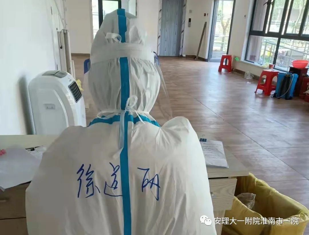 而舱内病人也一样让徐道丽动容,当他们一声声“你们辛苦了,感谢你们,我们得早点好,你们就能早点回家了”;“我离你远点,我担心把你传染了”……一位高血压的病人,当徐道丽一次次去病房给他测量血压时,他感动的语无伦次,说:“你们太辛苦了,对我们这么负责,我们农村人说不好话,我家孩子让我尽量不要给你们添麻烦,要和你们好好说话不要着急……”听着老人质朴的话语,我早已热泪盈眶,徐道丽感受到了患难见真心的情谊!